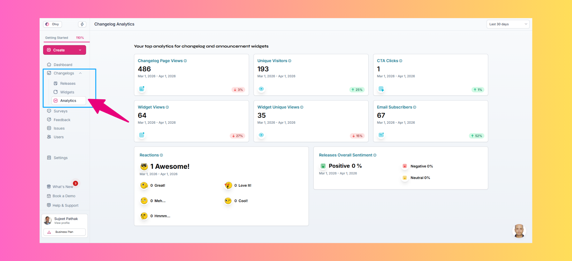 We’ve moved Changelog Analytics from the Dashboard to the Changelogs menu.