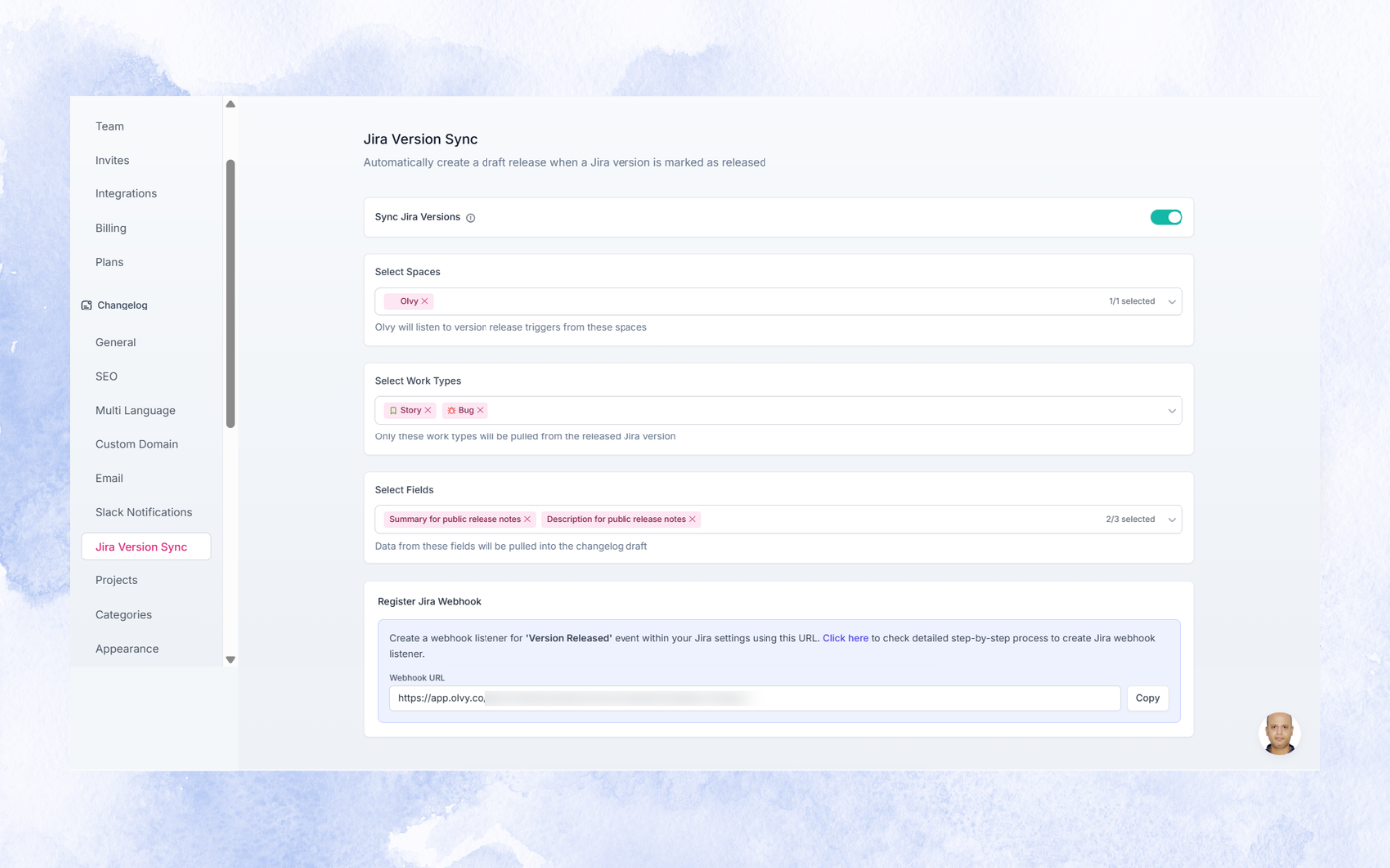 We’ve introduced Jira Version Sync in Olvy Changelogs. Now, whenever a version is released in Jira, Olvy can create a draft release for you.