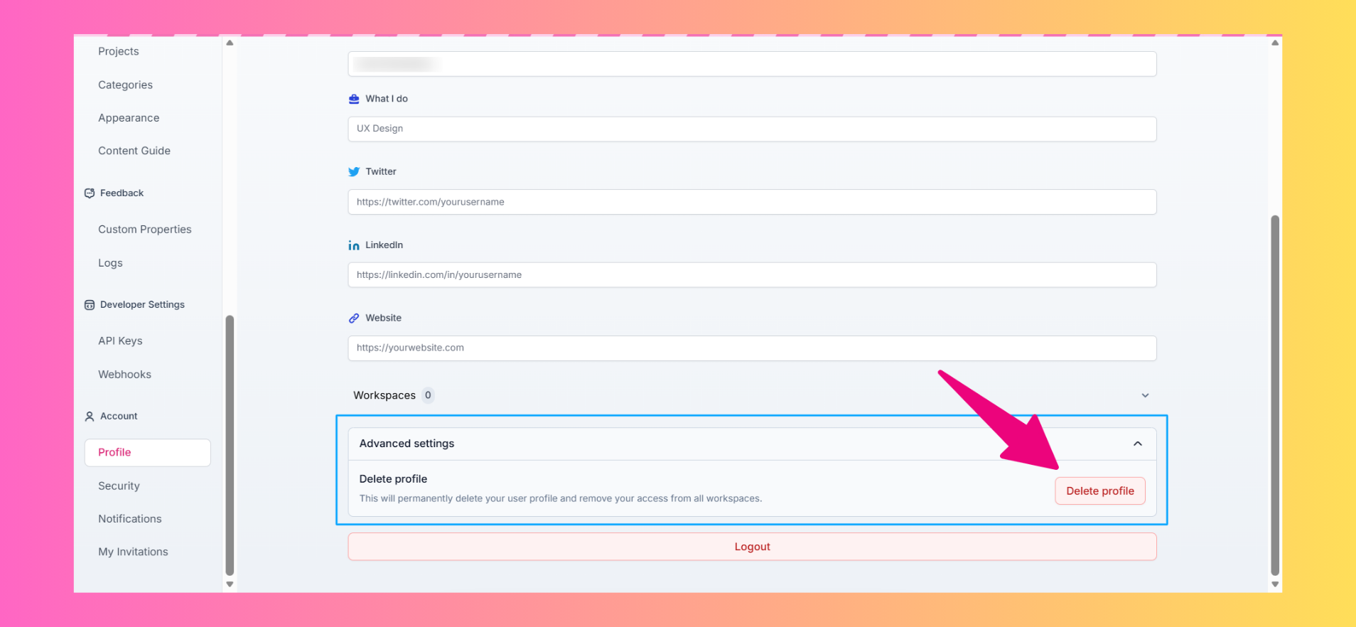 If a user isn’t associated with any workspace and wants to delete their Olvy account entirely, they can now do so via the new “Delete Profile” action.