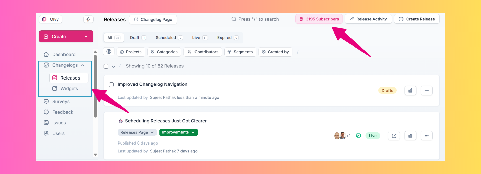 Access and create changelog releases from the new Releases page, now replacing the earlier Changelog menu for a more structured experience.